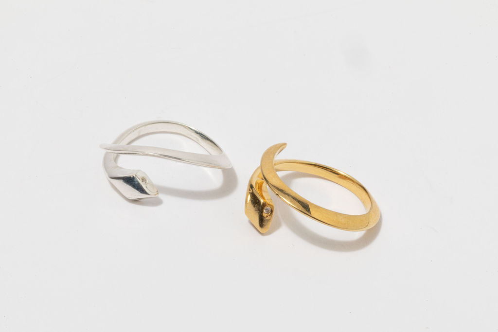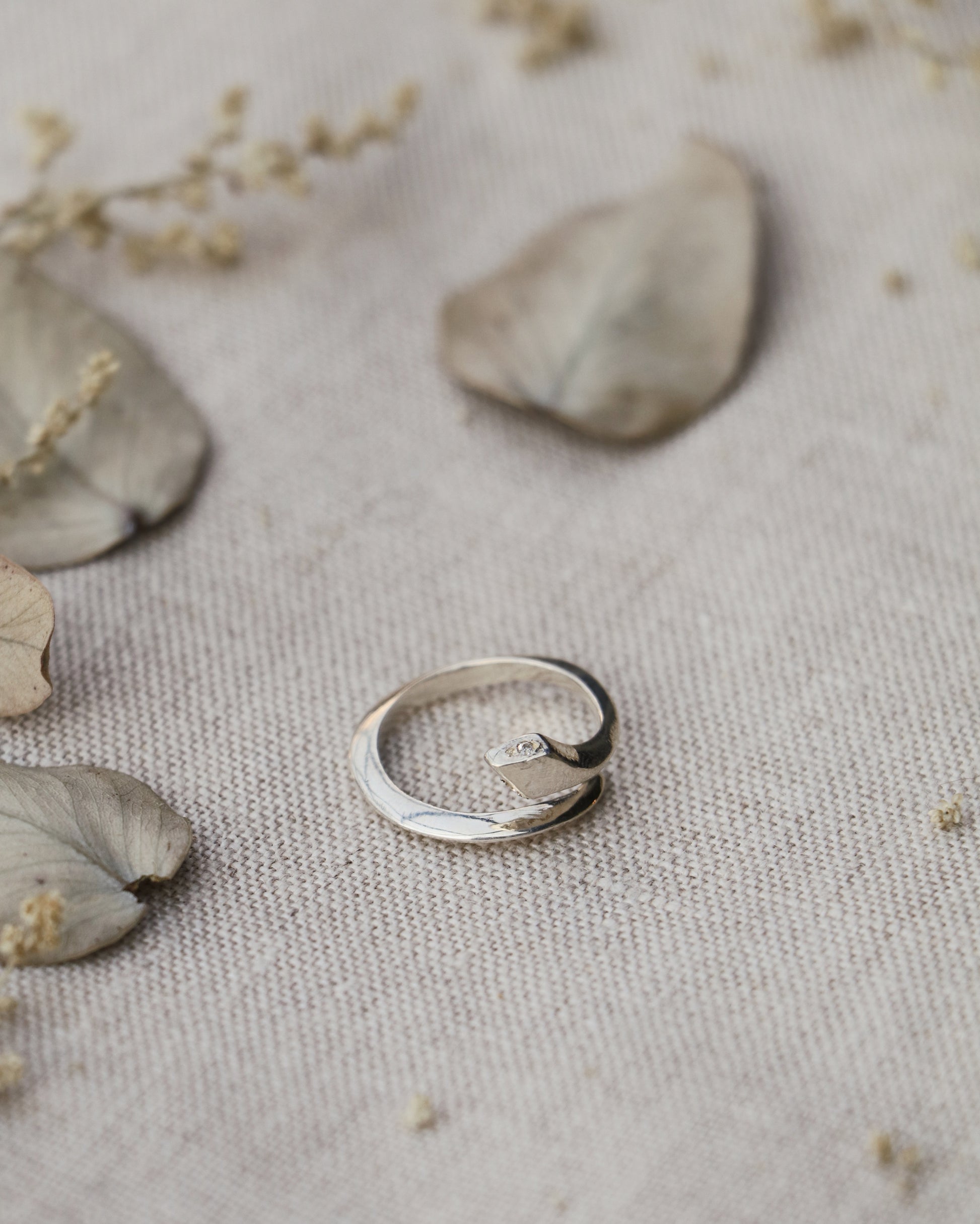 Anillo de serpiente con ojos de circonia, elaborado artesanalmente por manos