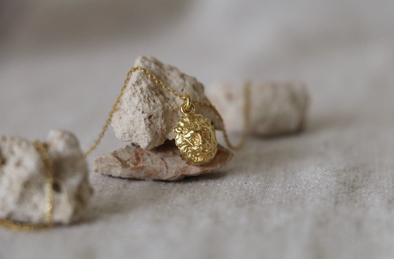 Collar con dije de león, con cara por ambos lados, elaborado artesanalmente por manos